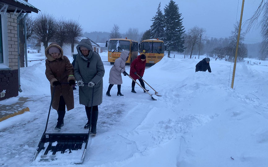Фотофакт. Школы и детсады Барановичского района борются со снегом