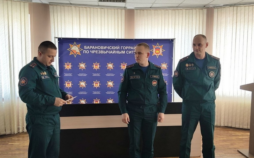 Барановичские спасатели переоделись в летнюю форму, поставили задачи и поздравили молодых родителей