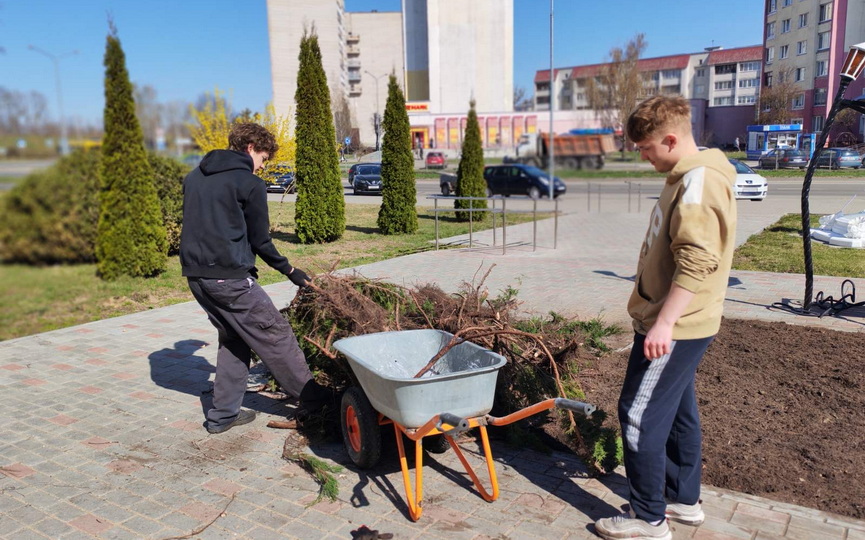 Субботник в Барановичском колледже строителей: вместе за чистоту и порядок