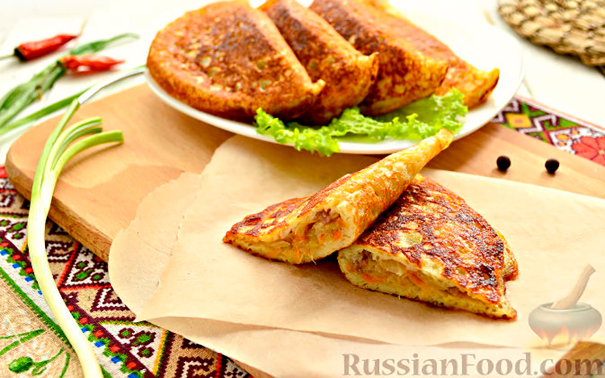 Блинные пирожки с капустой и мясным фаршем