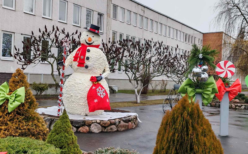 В гимназии № 1 состоялся яркий новогодний праздник, и его самым необычным героем стал величественный снеговик – Хранитель школьного двора. Но появился он здесь неслучайно. Этот снежный богатырь – творческий подарок детям и взрослым от дружной творческой команды. Оформление территории гимназии, призванное радовать глаз и создавать особое настроение при входе на уроки и при возвращении домой, стало для коллектива важной и вдохновляющей задачей.