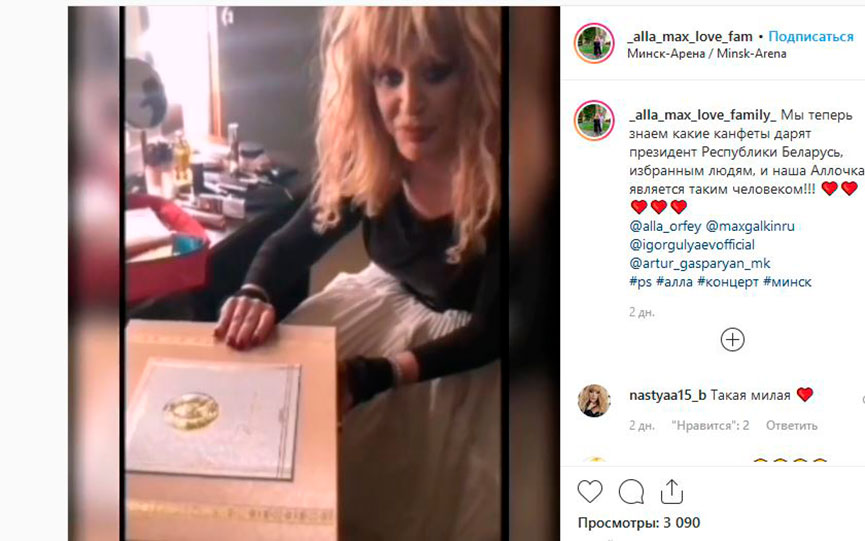 Видео. Алла Пугачева попробовала конфеты, которые ей вручили от имени Александра Лукашенко