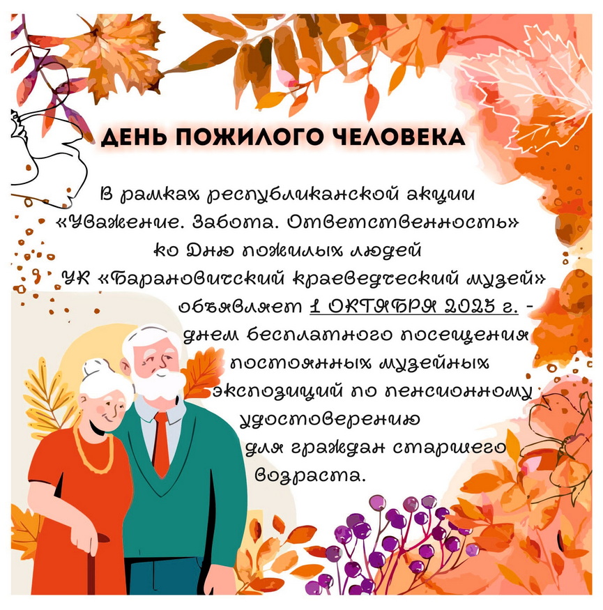 В рамках республиканской акции «Уважение. Забота. Ответственность», приуроченной ко Дню пожилых людей, Барановичский краеведческий музей сообщает: