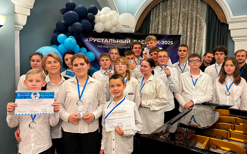 1 ноября в Минске оркестр «Гармоники» детской музыкальной школы искусств № 2 блестяще выступил на Международном конкурсе искусств «Хрустальный василёк – 2025», став лауреатом первой степени.