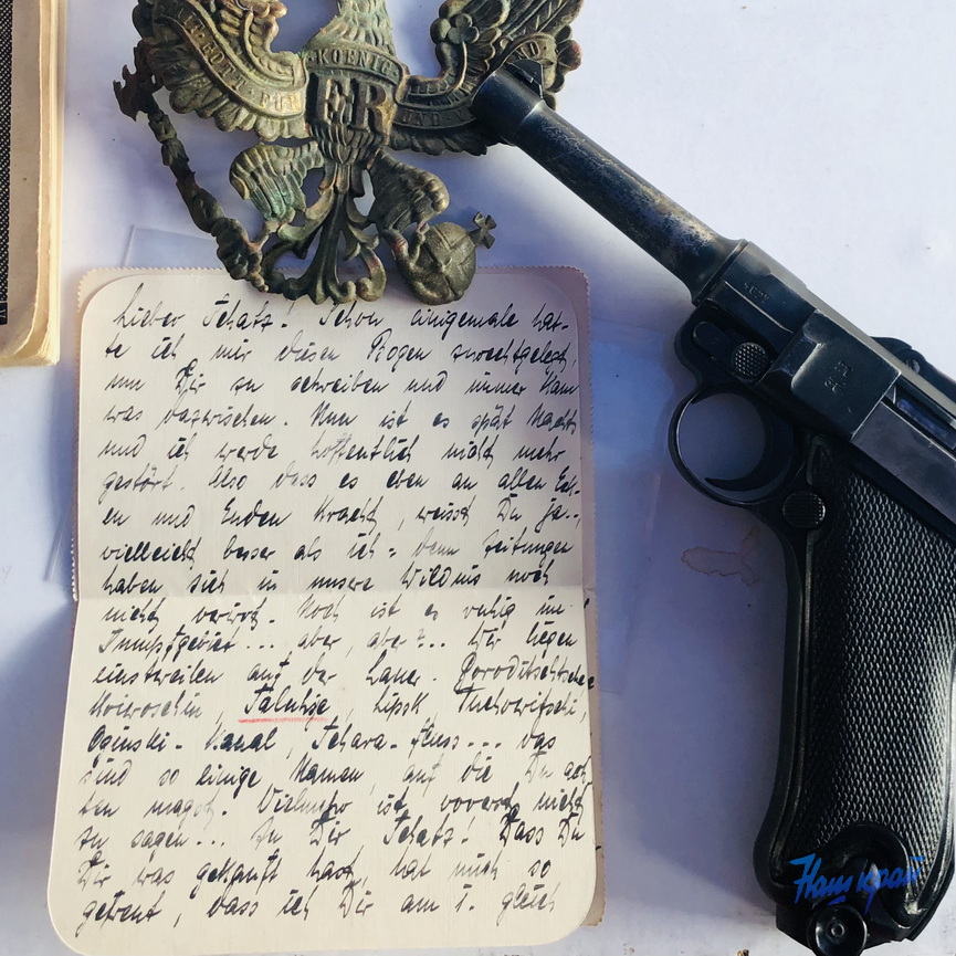 Среди наиболее любопытных экспонатов – письма немецких солдат, написанные рукописным готическим шрифтом и отправленные из Барановичей, немецкий шлем «рогач», солдатские жетоны, оружие времен войны, винтовка Мосина и многое другое.