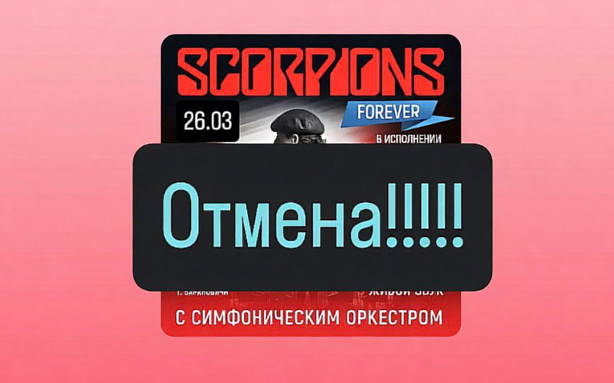 Выступление группы «Rock Believers» с программой «Скорпионс шоу с оркестром», которое должно было пройти 26 марта 2026 года, отменили. Причины отмены не уточняются.