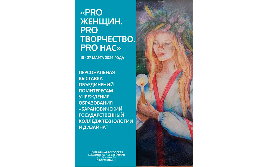 С 16 по 27 марта в городской центральной библиотеке имени В. П. Тавлая (ул. Ленина, 51) пройдет выставка творческих работ объединений по интересам колледжа технологии и дизайна. О чем расскажут учащиеся и их педагоги? О главной теме красноречиво говорит название выставки: «PRO женщин. PRO творчество. PRO нас».