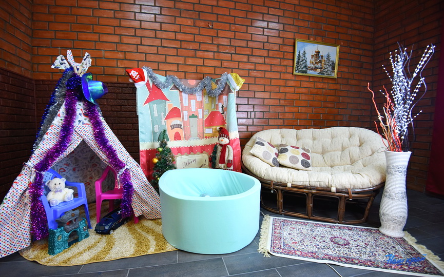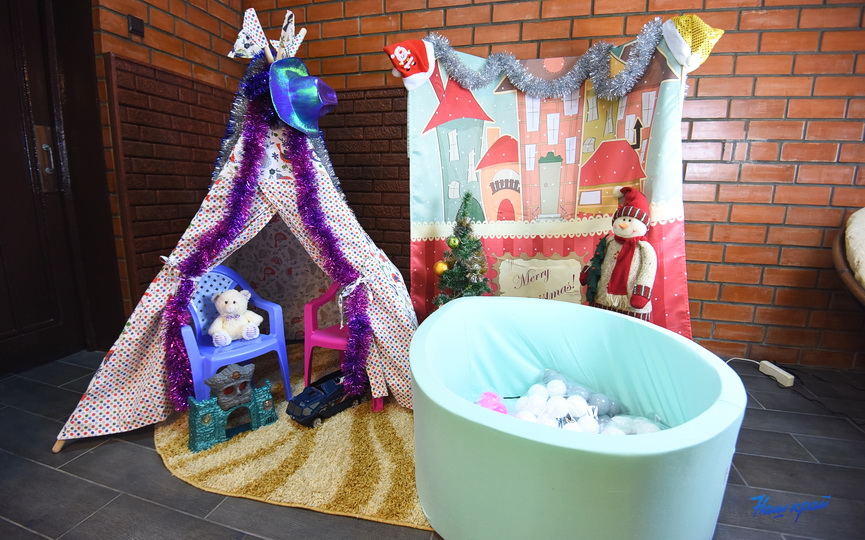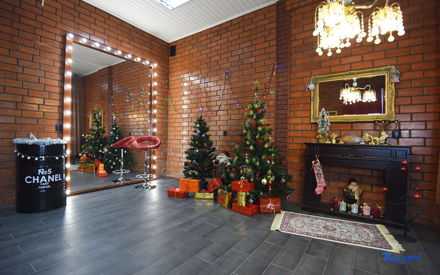 Дизайном и воплощением своей идеи Наталья занималась сама вместе с супругом. Получилось ярко, креативно, тепло и уютно. Сейчас все фотозоны оформлены в новогоднем стиле к предстоящим праздникам. Но каждая из них мобильна, по предварительному согласованию зона может быть подготовлена специально для вас. Это отличный выход для тех, у кого свадьба зимой, ‒ здесь комфортно будет всем: и вам, и фотографу.