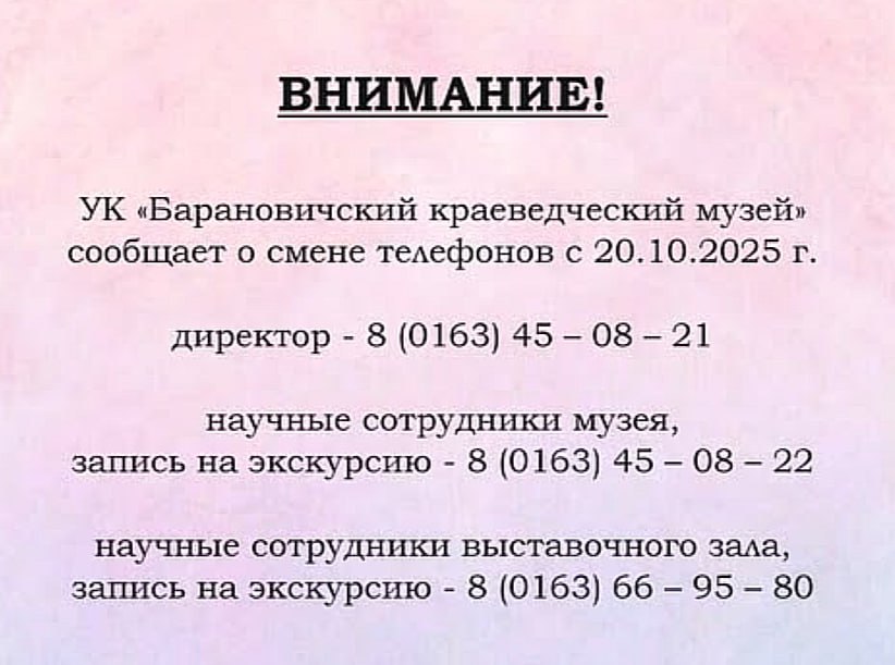 У барановичского музея изменились номера телефонов