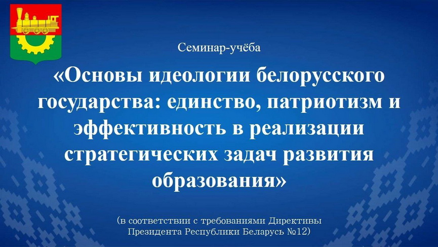 В нашем городе состоялся важный семинар-учёба для руководителей учреждений дошкольного, общего среднего, профессионально-технического и среднего специального, дополнительного образования. Тема мероприятия, проведенного в соответствии с требованиями Директивы Президента Республики Беларусь №12, обозначила четкий вектор: «Основы идеологии белорусского государства: единство, патриотизм и эффективность в реализации стратегических задач развития образования».