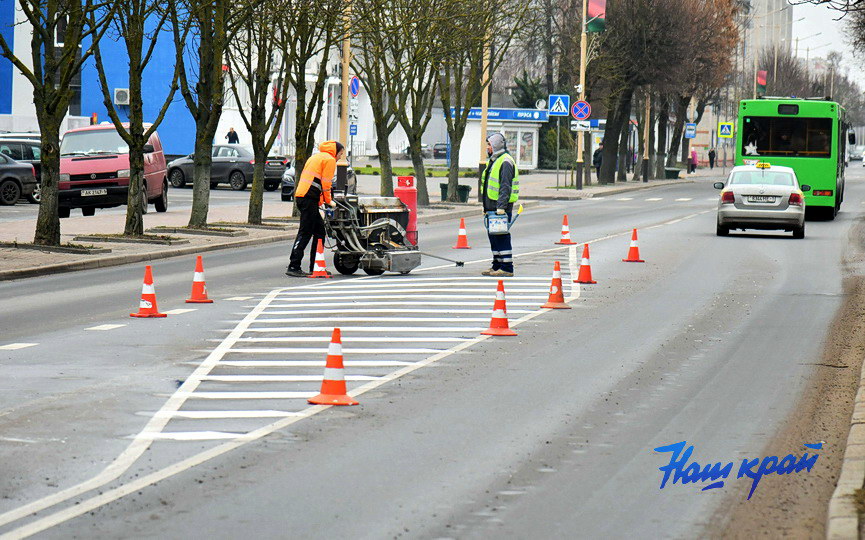 В районе пересечения улиц Мицкевича и Советской нанесена дорожная разметка.