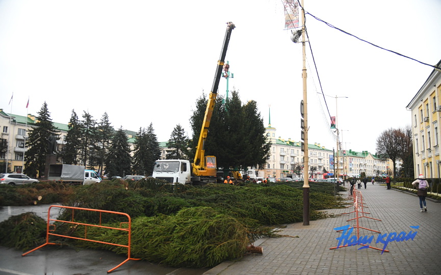 Десятки трех- и четырехметровых зеленых лесных красавиц начали собирать на площади Ленина в одну. Уже можно разглядеть, какой пушистой и стройной будет главная елка Барановичей. А когда на ее ветки повесят шары и другие украшения, зажгут иллюминацию – она станет еще наряднее.