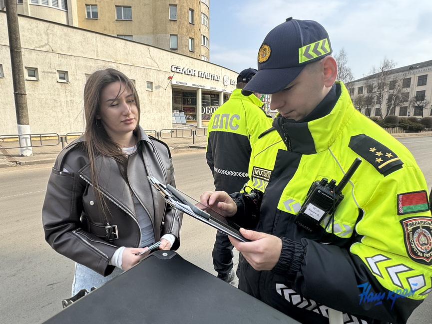 В это время Дмитрий Герасименко составляет протокол на водителя, который ехал без ремня безопасности.