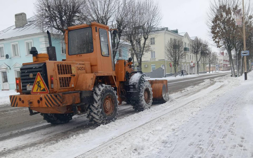 На улицы Барановичей вышла снегоуборочная техника. Циклону «Улли» готовятся противостоять и энергетики