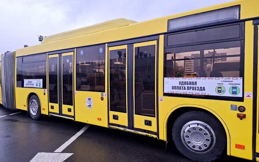 Этот маршрут выбран не случайно: он достаточно интенсивный и имеет высокую наполняемость пассажирами. Автобусы-гармошки с напоминающими наклейками уже вышли на линию.