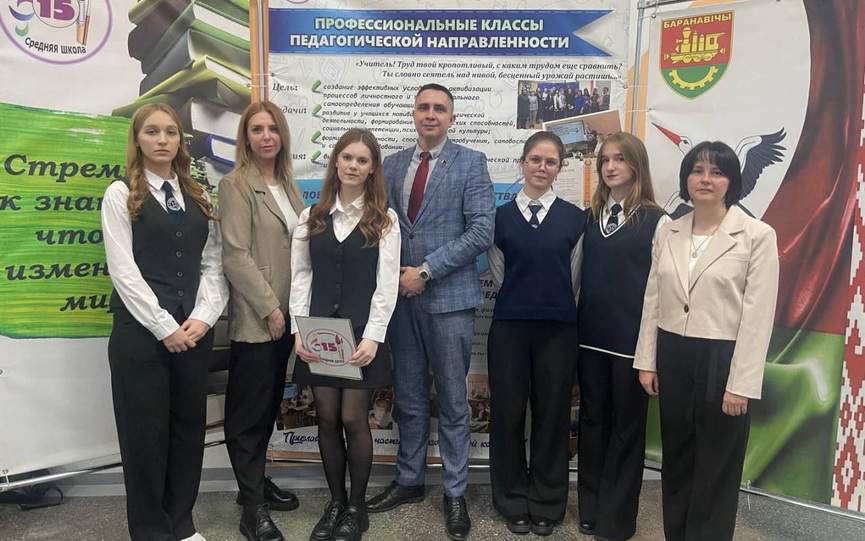 16 октября делегация средней школы № 15 города Барановичи во главе с директором школы Арнольбиком Николаем Викторовичем, заместитель директора по учебной работе Грицовец Анастасия Николаевна, учитель биологии Новожилова Инна Владимировна и учитель начальных классов Ульдинович Татьяна Павловна, а также учащиеся 10-х и 11-х классов Юшкевич Арина, Фабрик Анна, Потоцкая Юлия, Плюто Милана, Свотина Милана посетили гимназию № 14 города Минска для участия в круглом столе «Педкласс – это класс!». Мероприятие было направлено на укрепление профессиональных связей и обмен педагогическим опытом между учащимися, стоящими на пороге выбора профессии учителя.