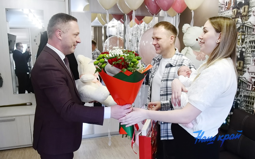Ольга, а такое имя для дочери накануне ее рождения выбрала мама, появилась на свет ночью, в 3 часа 10 минут. Все новогодние и рождественские праздники мама и малышка провели в родильном доме, а теперь они выписаны домой. В канун Старого Нового года с радостным событием Александра и Анастасию поздравил глава города Максим Антонюк, вручил цветы и памятные подарки.