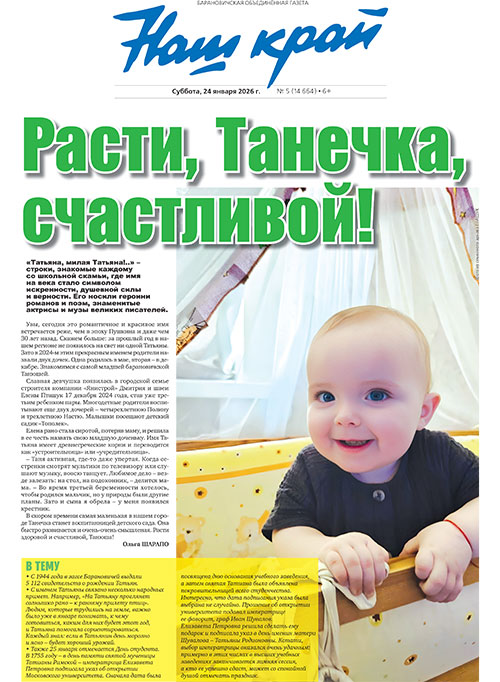 «Татьяна, милая Татьяна!..» – строки, знакомые каждому со школьной скамьи, где имя на века стало символом искренности, душевной силы и верности. Его носили героини романов и поэм, знаменитые актрисы и музы великих писателей. Увы, сегодня это романтичное и красивое имя встречается реже, чем в эпоху Пушкина и даже чем 30 лет назад. Скажем больше: за прошлый год в нашем регионе не появилось на свет ни одной Татьяны. Зато в 2024-м этим прекрасным именем родители назвали двух дочек. Одна родилась в мае, вторая – в декабре. В свежем номере газеты за субботу, 24 января, знакомимся с самой младшей барановичской Танюшей («Расти, Танечка, счастливой!»).
