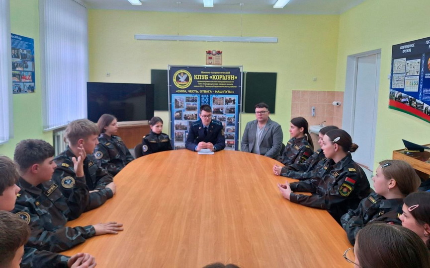 Встреча помощника Барановичского межрайонного прокурора Вадима Карачуна с учащимися Городищенской средней школы им. М. А. Скипора и воспитанниками военно-патриотического клуба «Коршун» состоялась в школе.