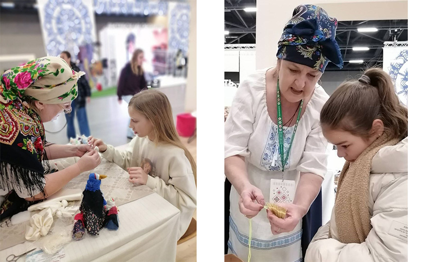 Также свое творчество демонстрируют мастера-ремесленники Первого региона. В их числе мастер народных промыслов (ремесел) районного центра ремесел Людмила Шворак и руководитель кружка отдела народного творчества районной клубной системы Галина Столяр. Для посетителей выставки 30 декабря они провели мастер-классы по изготовлению традиционных славянских кукол-оберегов из соломы и ткани.