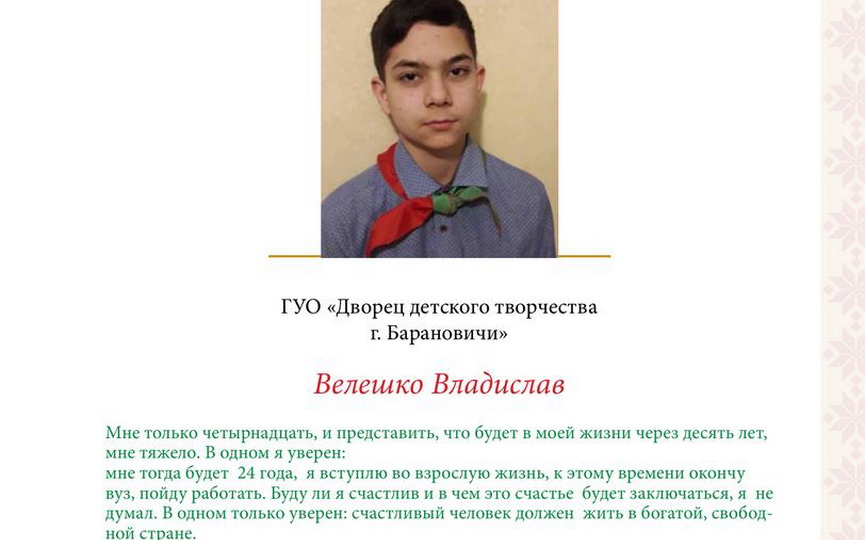Данный проект была объявлен Министерством информации и Министерством образования Республики Беларусь на прошлой выставке в 2019 году. Учащимся и студентам предлагалось описать, какой они хотели бы видеть Беларусь через 10 лет в 10 предложениях.