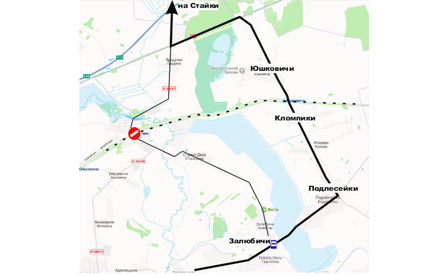 В связи с этим 5 ноября с 8:30 до 17:00 автобусы Барановичи – Крошин – Бартники, отправлением от автовокзала в 13:50, поедут в объезд: д. Залюбичи – Подлесейки – автомобильная дорога Н-26059 – автомобильная дорога Р-2 – Стайки и далее по маршруту.