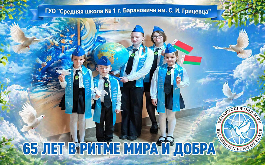 В год 65-летнего юбилея образования  ФОНДА МИРА особенные и очень трогательные мероприятия прошли именно там, где само название располагает к добру, — в ШКОЛЕ МИРА, в ГУО "Средняя школа №1 г. Барановичи им. С.И. Грицевца". Здесь с  душевной теплотой прошла акция «Мир в твоих руках», объединив старших и младших миротворцев в едином порыве созидания.