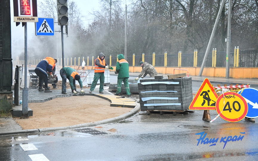 По-осеннему зимняя погода дает возможность коммунальникам продолжать работы по благоустройству города. Сейчас работники «Барановичиремстроя» обустраивают тротуары в двух районах. Современная пешеходная дорожка из мелкоштучной тротуарной плитки протяженностью 250 метров ложится на улице Горького, от перекрестка с Притыцкого до военкомата.
