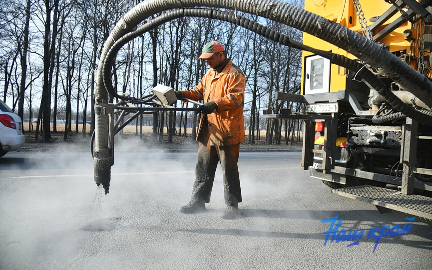 – Современная технология ямочного ремонта струйно-инъекционным методом позволяет оперативно справляться с неровностями дорожного покрытия, – говорит мастер предприятия Александр Кудласевич. – Для ликвидации ям мы применяем смесь щебня с битумной эмульсией. Этот метод позволяет работать даже при низких, от минус 15 градусов Цельсия, температурах и до 40 градусов жары.