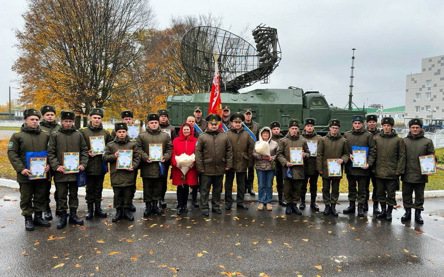 Сегодня в 8-й радиотехнической бригаде прошло чествование военнослужащих, выслуживших установленные сроки срочной военной службы. В адрес возмужавших парней прозвучали слова признательности от командования бригады, а лучшие солдаты были награждены личными фотографиями у развернутого Боевого Знамени, грамотами, благодарственными письмами родителям и сувенирной продукцией.