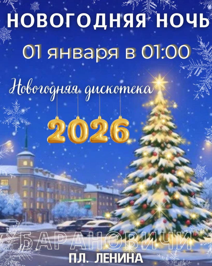 Новогодняя дискотека «НОВОГОДНЯЯ НОЧЬ 2026» пройдет 1 января с 1.00 до 3.00 возле главной елки города.