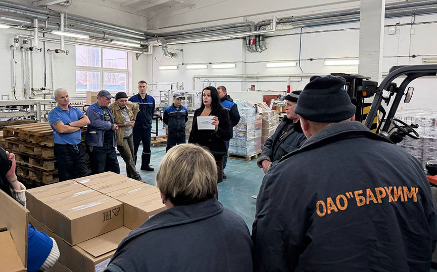 С коллективом «Бархима» встретилась делегат ВНС, директор предприятия Наталья Костюкевич. Наталья Николаевна рассказала коллегам об основных направлениях и приоритетах Программы социально-экономического развития страны на 2026–2030 годы, по которой мы будем жить дальше.