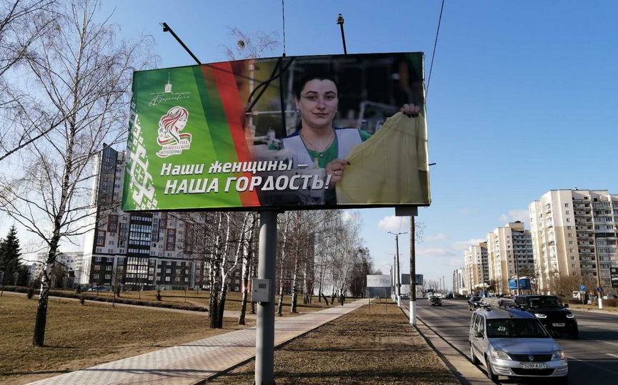 «Наши женщины - наша гордость». В Барановичах появились баннеры с портретом милых тружениц