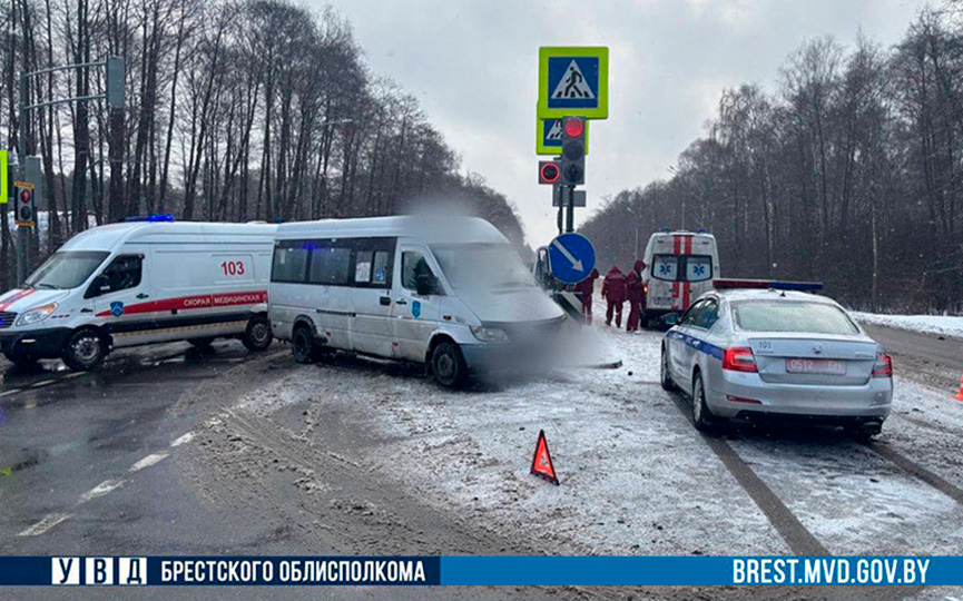 Машина скорой помощи с включенной сиреной столкнулась с маршруткой в Брестском районе