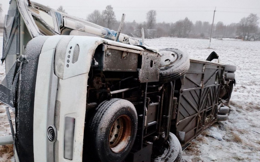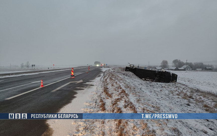 Международный автобус опрокинулся в Толочинском районе, одна пассажирка погибла на месте