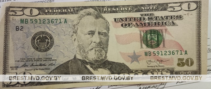 В Барановичский ГОВД поступило сообщение о том, что 30-летняя местная жительница в одном из банков города хотела обменять денежную купюру достоинством 50 долларов США.