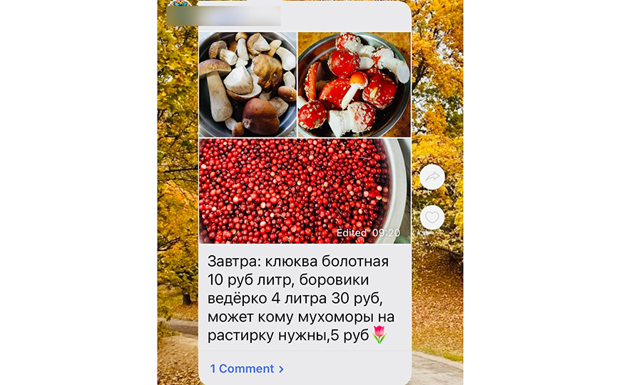 Опытные барановичские грибники и ягодники часто делятся излишками «тихой охоты» через городские паблики в социальных сетях. Практика хорошая, но зачастую в продаже можно встретить и настоящую «запрещенку». Одно из таких объявлений мы и заметили: с клюквой и лукошком боровиков продавали… мухоморы. «Да, мухоморы. На растирку», – поясняет продавец.