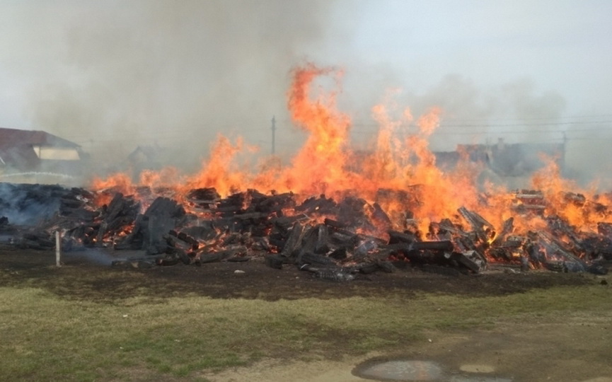 Спасатели, прибывшие на место происшествия, увидели, что уложенные штабелями железнодорожные шпалы были полностью охвачены пламенем, которое могло переброситься на соседние строения.