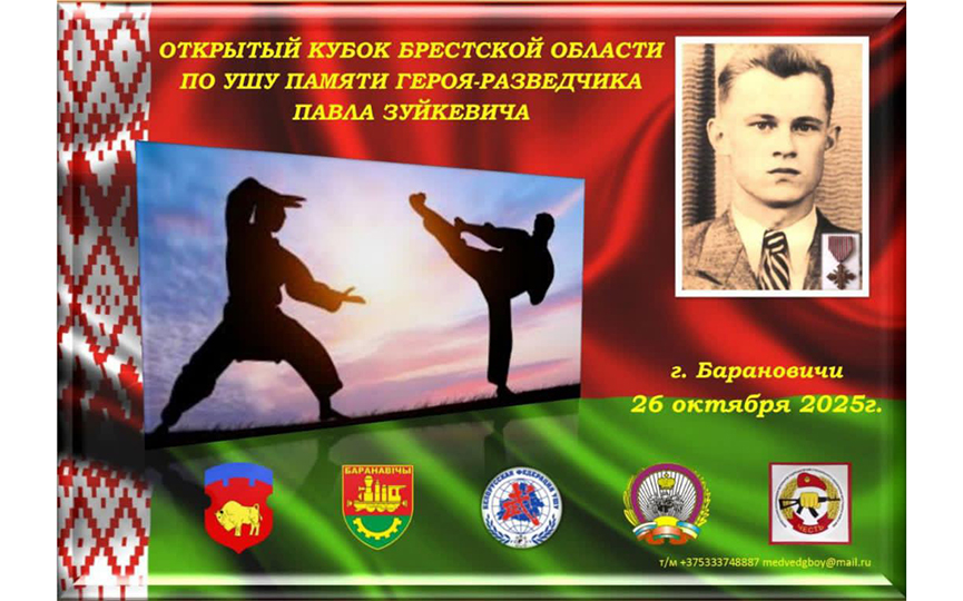 Открытый Кубок Брестской области по ушу памяти героя-разведчика Павла Зуйкевича может посетить любой уже в это воскресенье, 26 октября. Вход бесплатный. Приходите с 12.00 в зал Барановичской СДЮШОР единоборств и велоспорта на Войкова, 3а.