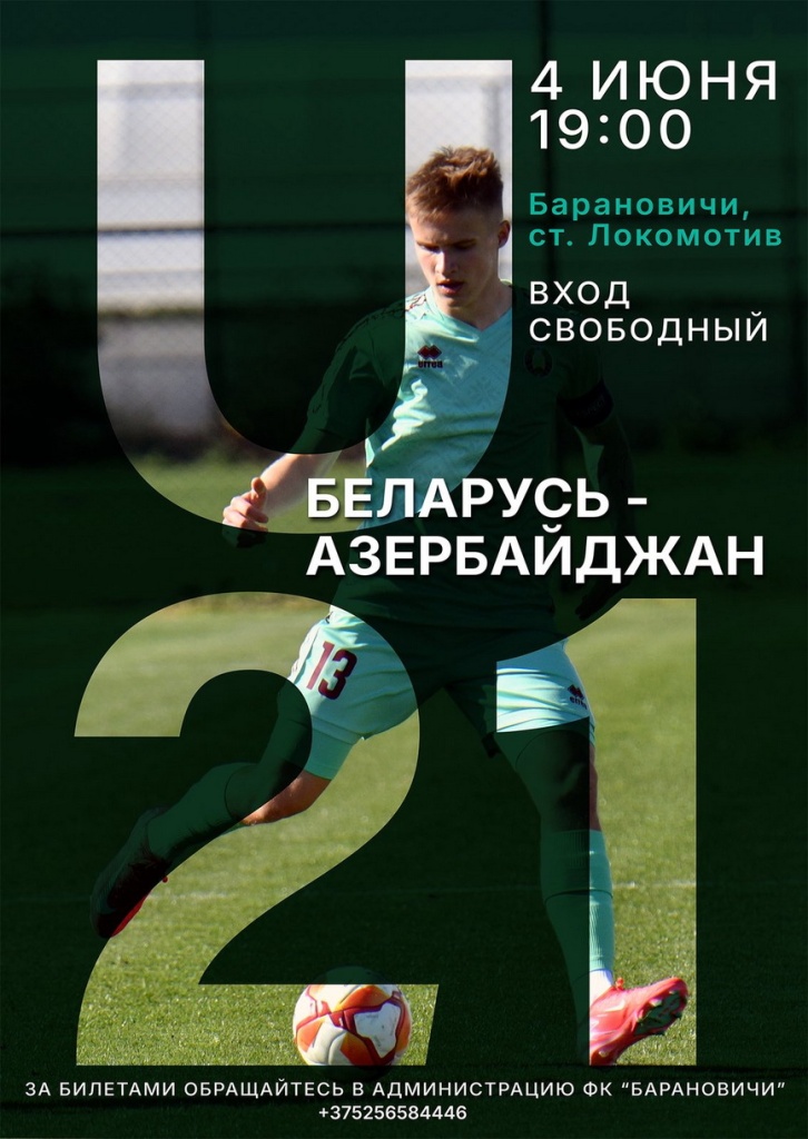 Беларусь U21 – Азербайджан U21: 4 июня в 19.00 (Барановичи, стадион городской).