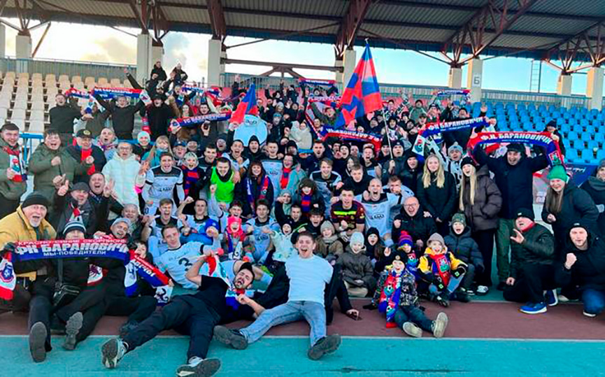 Более 130 болельщиков нашей футбольной дружины по главе с председателем Барановичского горисполкома Максимом Антонюком и его заместителями сразу после игры тепло поздравили всех футболистов и тренеров с замечательным успехом в этом футбольном сезоне!